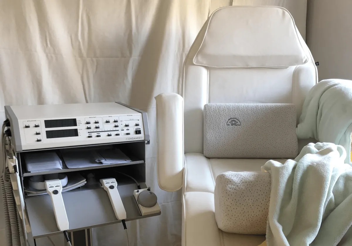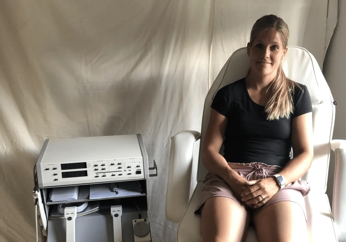 Behandlingen foregår i en stol, hvor du har al tøjet på undtaget sko.