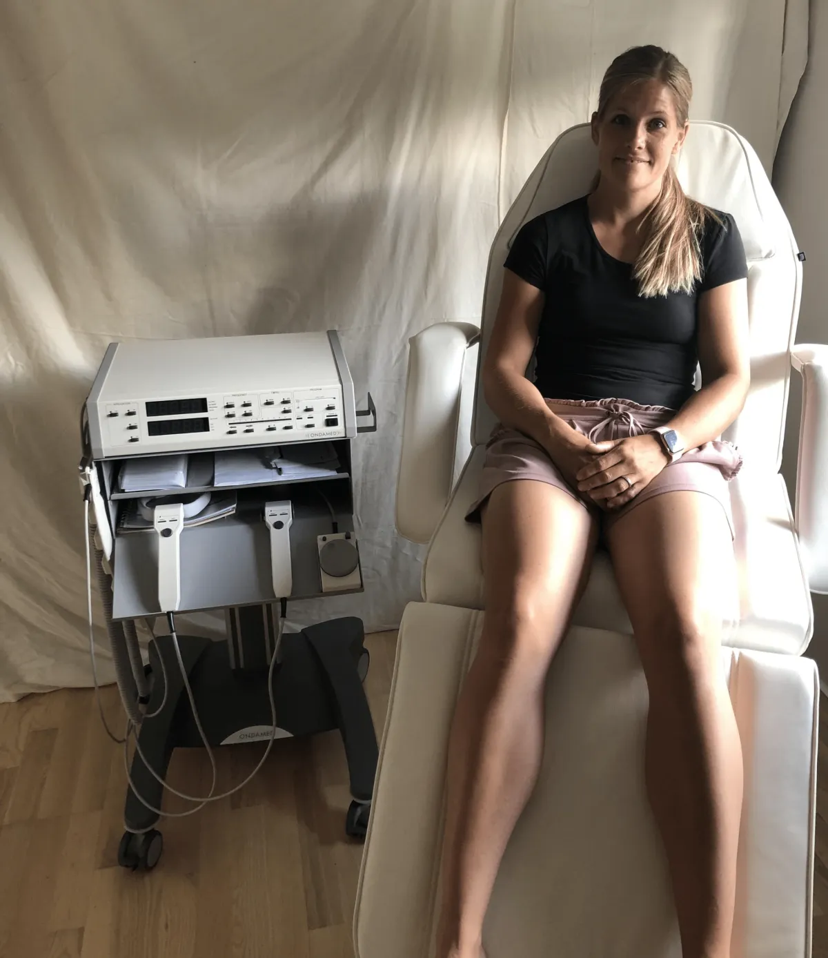 Forskellige applikatorer placeres på kroppen, helt smertefrit.