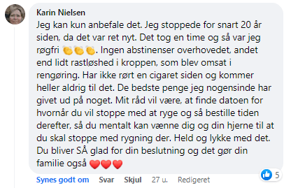 Behandling varer 1 time: Ikke flere tyggegummier, damp eller indre kampe med ens viljestyrke.